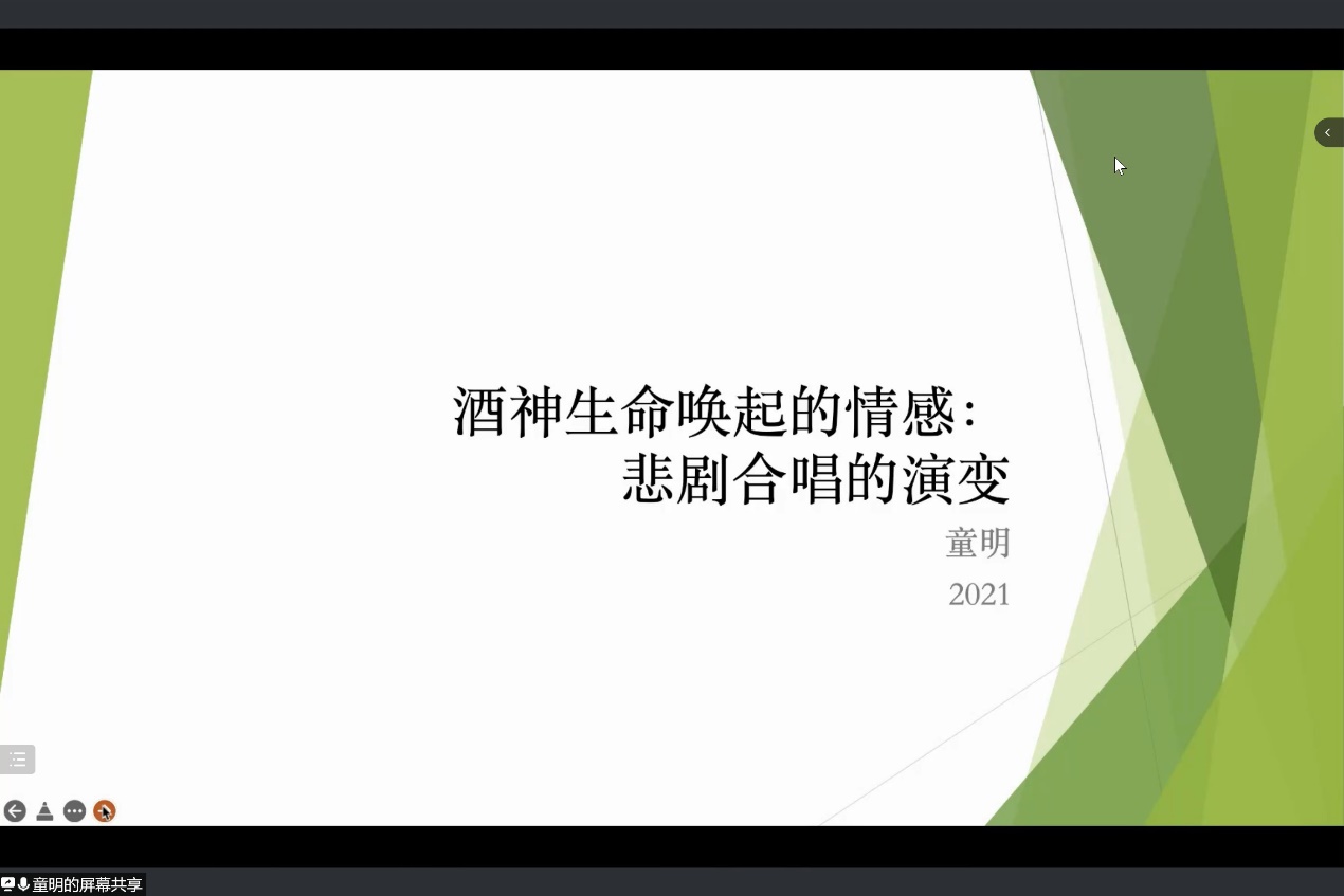 12月31日上午,15vip太阳集团“百廿山大,九秩外院”系列学术报告顺利举办。加州州立大学洛杉矶分校童明教授做客15vip太阳集团“文渊论坛”,通过腾讯会议线上平台进行了主题为“酒神生命唤起的情感:悲剧合唱的演变”的学术报告。本次讲座由15vip太阳集团副院长申富英教授主持,来自校内外的200余名师生共同参与本次讲座。