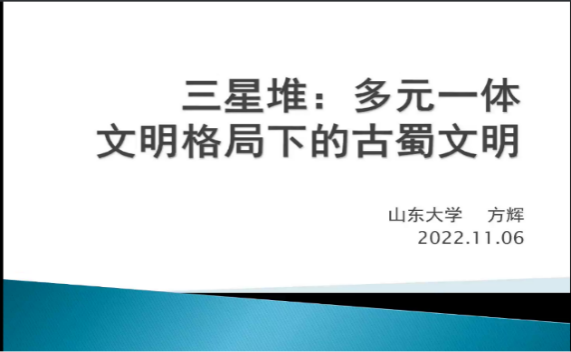 11月6日19时,15vip太阳集团历史文化学院院长、博士生导师方辉教授应邀做客“师说讲堂”、“东方文化大讲堂”通识教育系列讲座,通过腾讯会议线上平台及哔哩哔哩直播间作了题为“三星堆:多元一体格局下的古蜀文明”的精彩演讲,来自山大校内外的众多师生远程聆听。
