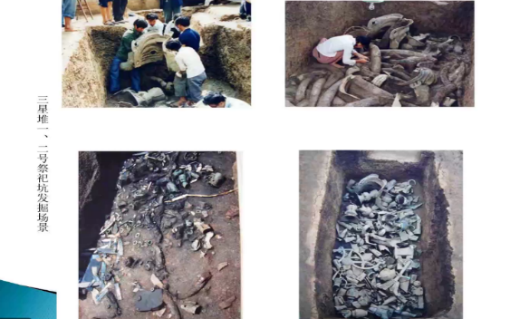 在上世纪20年代,三星堆首先由当地农民燕道诚发现。继而英国传教士董笃宜、华西大学博物馆馆长葛维汉及其助理林名均、国民政府广汉县长罗雨仓率人挖掘出了石壁(起先为私人收藏,后收归国有)以及陶器等日常生活器具。其他如玉环、玉璧都是夏商时期及《周礼》里面常见的玉石器。三星堆作为极为重要的文化遗址的地位初露端倪。