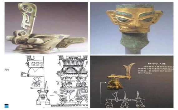 第二部分主要阐释三星堆所展示的古蜀国文明,根据《蜀王本纪》、《华阳国志》等古文献记载均可得到证实。《华阳国志·署志》中“目纵”形象正是蜀国开国之君蚕丛的形象。《蜀王本纪》中关于古蜀国的记载,涉及到一些神话传说,说他们从杜宇时开始有农耕,与周代文明并无不同。结合《山海经》看,古代文献中对神树的记载,都与《山海经》中建木、扶桑、若木、三桑、桃有关。