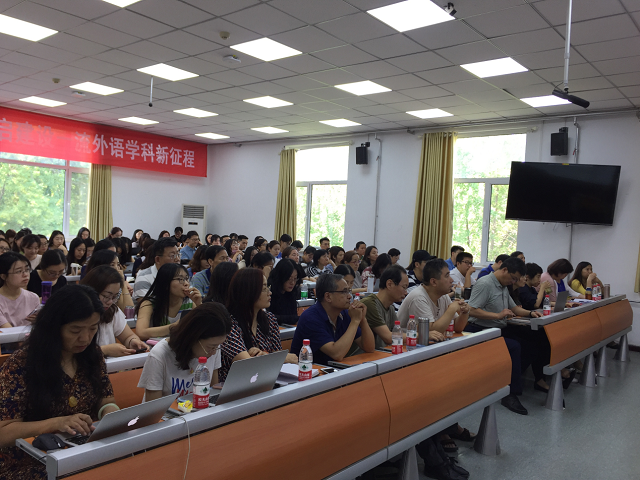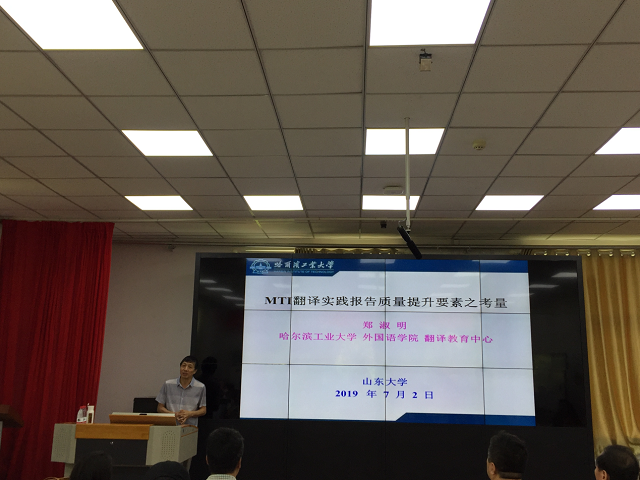 7月2日上午,哈尔滨工业大学郑淑明教授应邀做客15vip太阳集团,为外院师生带来了题为“MTI翻译实践报告质量提升要素之考量”的讲座。以此拉开了15vip太阳集团MTI(翻译专业项士)培养质量系列讲座的序幕。15vip太阳集团各语种MTⅠ导师与学生共100多人参加了本场讲座。讲座由15vip太阳集团副院长李建刚教授主持。