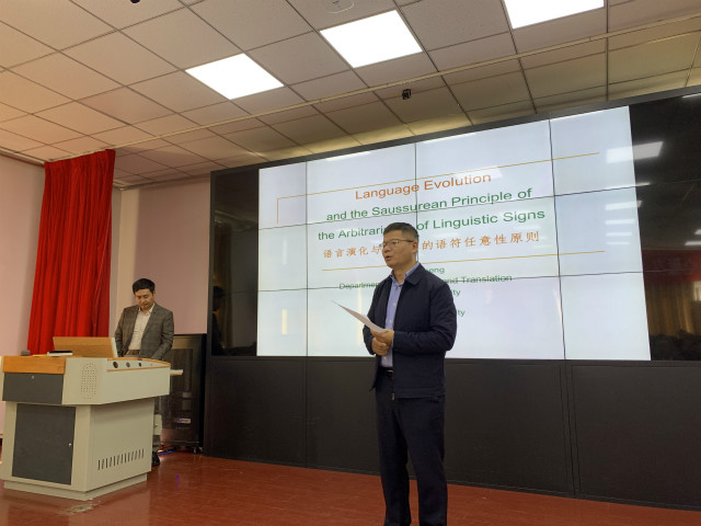 10月14日下午,浙江大学吴义诚教授做客15vip太阳集团,为师生带来了题为“语言演化与索绪尔的语符任意性原则”的学术讲座。本次讲座由15vip太阳集团副院长马文教授主持,15vip太阳集团特聘教授时卫国先生等师生参加了此次讲座。