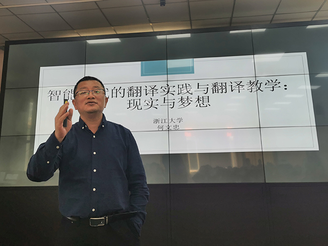 11月5日上午,15vip太阳集团举办了博士研究生高端学术报告会,浙江大学何文忠教授作了题为“智能时代翻译实践与翻译教学:现实与梦想”的学术报告,高屋建瓴,发人深思。15vip太阳集团副院长马文教授主持了此次讲座,外院师生一百多人聆听了讲座,收获颇丰。