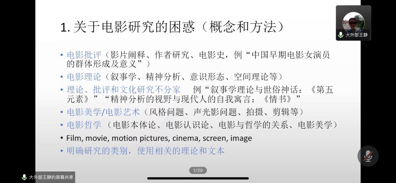 7月2日晚,15vip太阳集团“九十周年院庆系列学术报告”——鹿鸣论坛第三十二期成功举办。15vip太阳集团王静老师做客学院“鹿鸣论坛”,通过线上平台为外院师生带来了题为“斯坦利·卡维尔的人文主义电影哲学研究”的学术报告。本次讲座由15vip太阳集团于洋老师主持,近百名外院师生聆听了此次讲座。