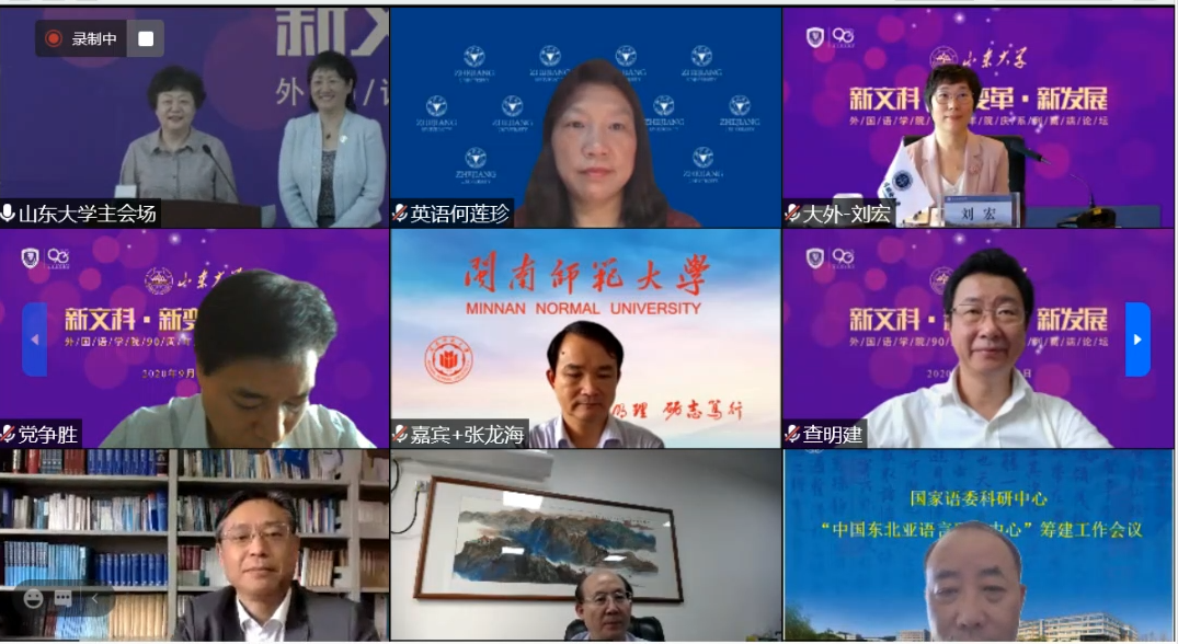 上海外国语大学党委书记姜锋教授从外语学科面临的新时代、新挑战、改革与创新、上外的探索等方面阐释了“新文科”的建设主要内容。