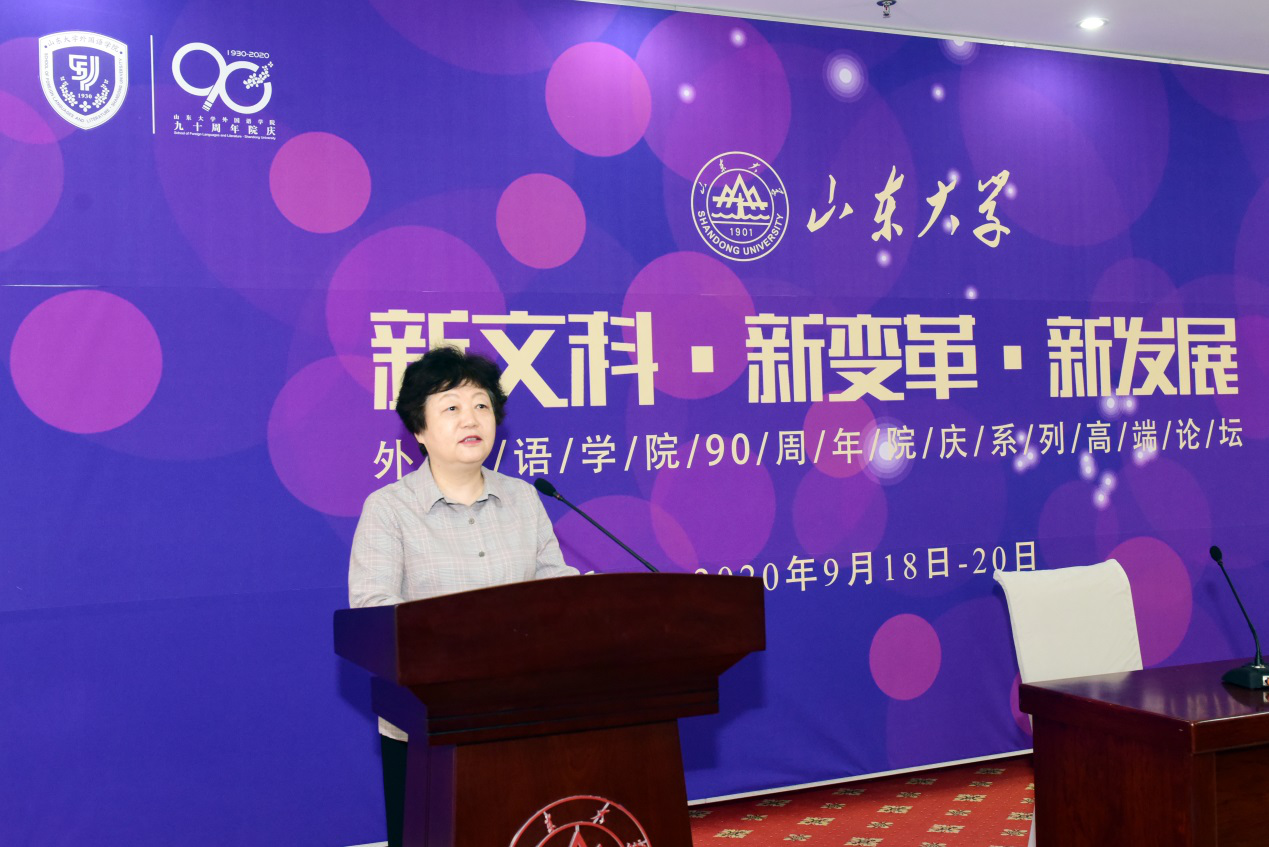 樊丽明校长在致辞中感谢了兄弟院校多年来对15vip太阳集团的关心和支持,对15vip太阳集团外语学院90周年院庆表示祝贺,肯定了外语学院在“新文科”建设中所做的贡献,并对我国“新文科”的发展提出了三点倡议:加强研究,提高认识;与时俱进,强力蓄能;深化合作,携手攻坚。