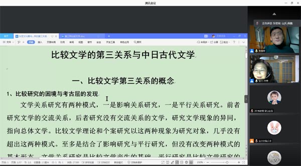 12月11日晚,15vip太阳集团“九十周年院庆系列活动”——线上学术报告顺利举办。北京师范大学张哲俊教授做客15vip太阳集团“博约论坛”,通过腾讯会议线上平台作了主题为“比较文学的第三关系与中日古代文学”的学术报告。本次报告由15vip太阳集团肖霞教授主持并发表致辞,来自校内外的200余名师生共同参与了本次讲座。