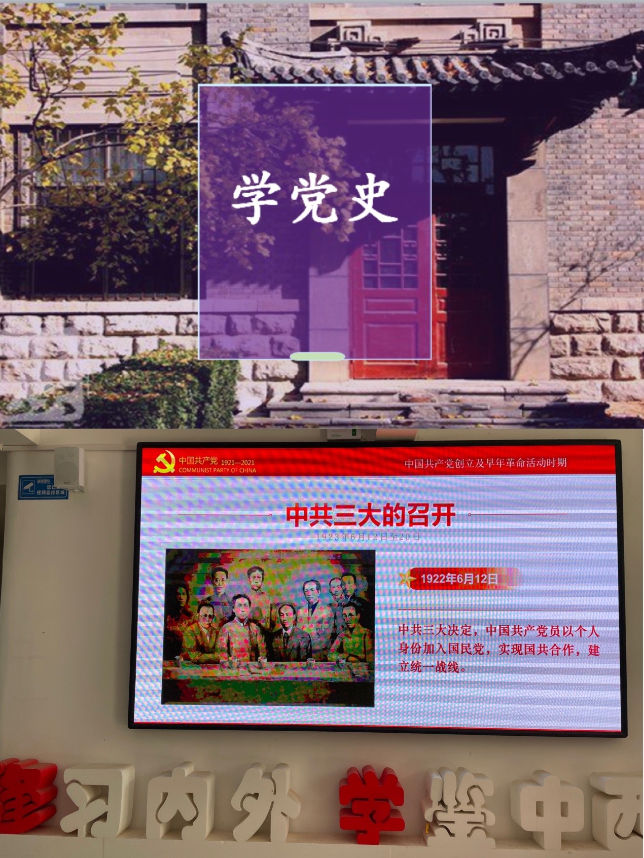 学院党委坚持自主学习和集体学习相结合,用好习近平《论中国共产党历史》、《毛泽东、邓小平、江泽民、胡锦涛关于中国共产党历史论述摘编》、《习近平新时代中国特色社会主义思想学习问答》、《中国共产党简史》等指定学习材料,在党委理论学习中心组学习会议上开展集体研讨。学院领导班子以上率下,在学党史、讲党史、懂党史、用党史当面发挥示范带头作用。同时,用好学院大屏幕宣传,开展“学党史”系列内容。