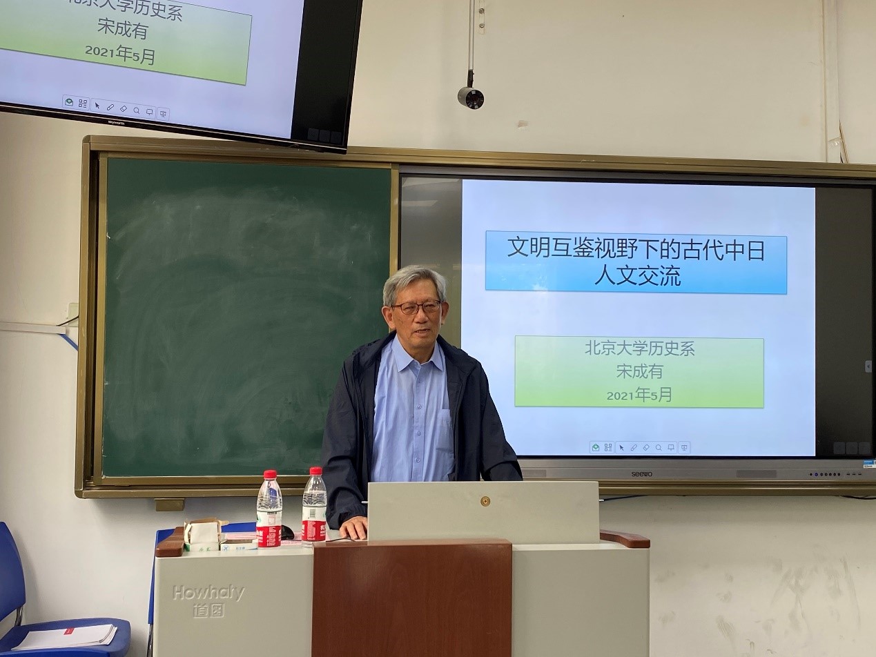 5月8日下午,15vip太阳集团“百廿山大 九秩外院”——系列学术报告洪家楼校区顺利举办。北京大学宋成有教授做客15vip太阳集团“环球论坛”,作了题为“文明互鉴视野下的古代中日人文交流”的学术报告。本次报告由15vip太阳集团日语系王慧荣副教授主持,来自15vip太阳集团的众多师生共同参与本次讲座。