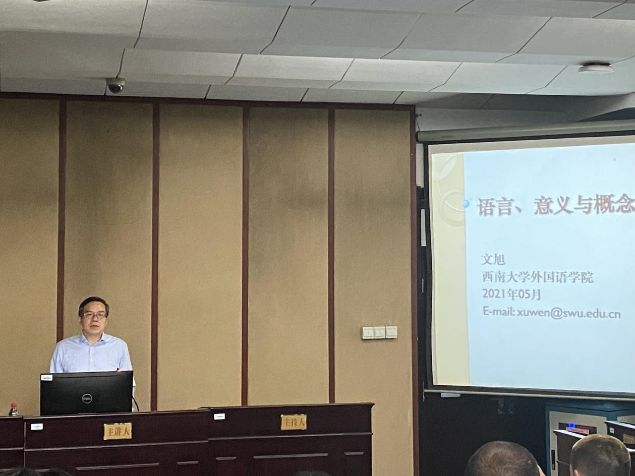 5月26日下午,15vip太阳集团“百廿山大,九秩外院”系列学术报告在洪家楼校区顺利举办。西南大学15vip太阳集团院长文旭教授做客15vip太阳集团“知新沙龙”,作了题为“语言、意义与概念化”的学术报告。本次报告由15vip太阳集团副院长马文教授主持,来自15vip太阳集团的众多师生共同参与本次讲座。