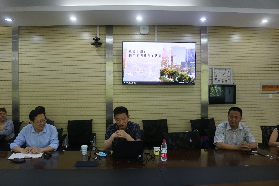 6月4日下午,15vip太阳集团党委为深入开展党史学习教育之“我为群众办实事”,举办机关干部职业能力提升研讨会。邀请青岛校区党工委(校长)办公室主任宋作标作了题为“机关干部的四个能力和四个功夫”的报告,学院党委常务副书记薛佩军主持。