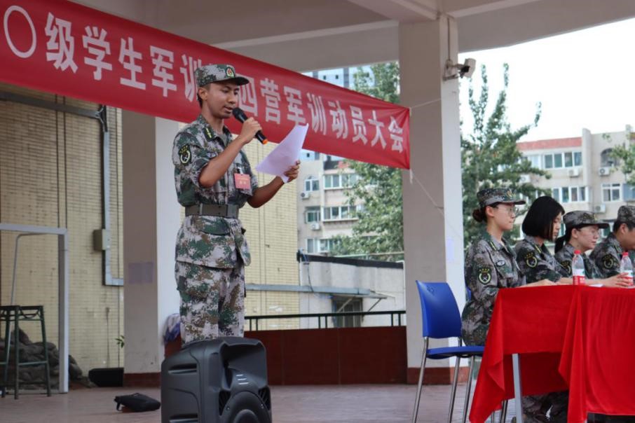 教官代表、四营九连一排排长陈海宾代表执训教官庄严承诺,将牢记教官职责,严格要求自己,为学生做好表率,树立榜样,以高度的责任感和饱满的热情投入军训工作。