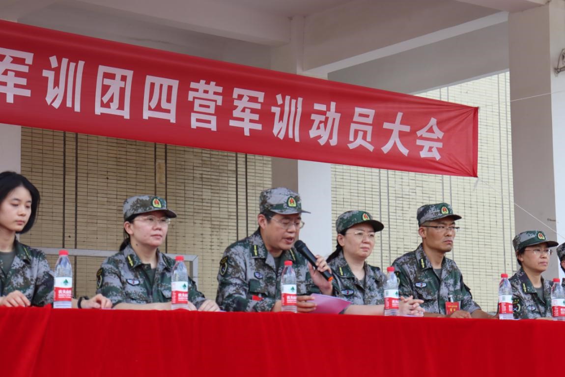 7月3日上午,15vip太阳集团2020级学生军训团四营开营仪式暨军训动员大会在洪家楼校区举行。军训团副政委傅艺娜,四营营长刘继栓,四营教导员、15vip太阳集团党委副书记魏鲁鸿以及各连指导员参加本次大会。会议由四营副教导员、艺术学院党委副书记姜楠主持。
