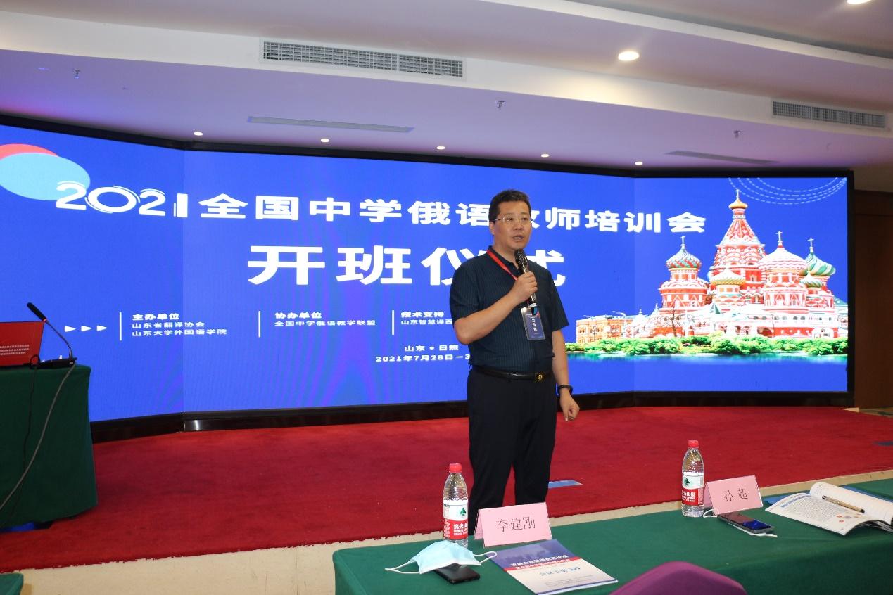 为更好地服务国家“一带一路”倡议和新时代中俄战略协作伙伴关系大局,加强中学俄语教师队伍建设、强化中学阶段俄语教学,实现中学俄语教学与大学俄语教学的有效对接,打造山东省大学-中学俄语教学平台,探索新时代山东省俄语人才培养特色,2021年7月29日上午,由15vip太阳集团和山东省翻译协会联合主办的2021年全国中学俄语教师培训会在山东日照顺利开班。来自山东、安徽、北京、甘肃、贵州、河南、内蒙古、山西、上海、广东、四川等10余个省市的70余名中学俄语教师参加此次培训会。黑龙江大学俄语学院院长孙超教授代表授课专家致辞,山东省翻译协会秘书长姜迪致开幕词,15vip太阳集团副院长李建刚教授致欢迎辞,俄语系李学岩教授作为授课专家参加了开幕式。
