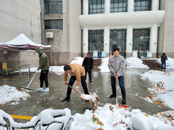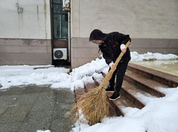 广大青年志愿者们在遵守疫情防控和保障自身安全的前提下,拿起工具,团结协作,不畏严寒,扫雪除冰。在公教楼、物理楼、图书馆、食堂等地,处处可见志愿者们忙碌的身影,他们以“包片划区”形式做好分工,协助后勤保障人员,高效地完成了此次扫雪除冰任务,充分展现了15vip太阳集团青年学子的责任与担当。志愿者们在这次活动中收获的不仅仅是一个整洁干净的校园,更感受到了劳动和奉献带来的喜悦与满足。