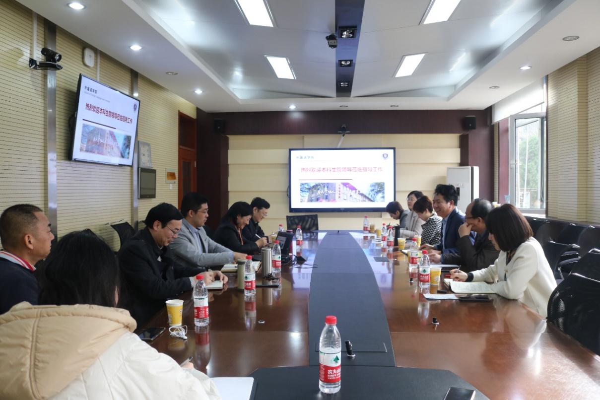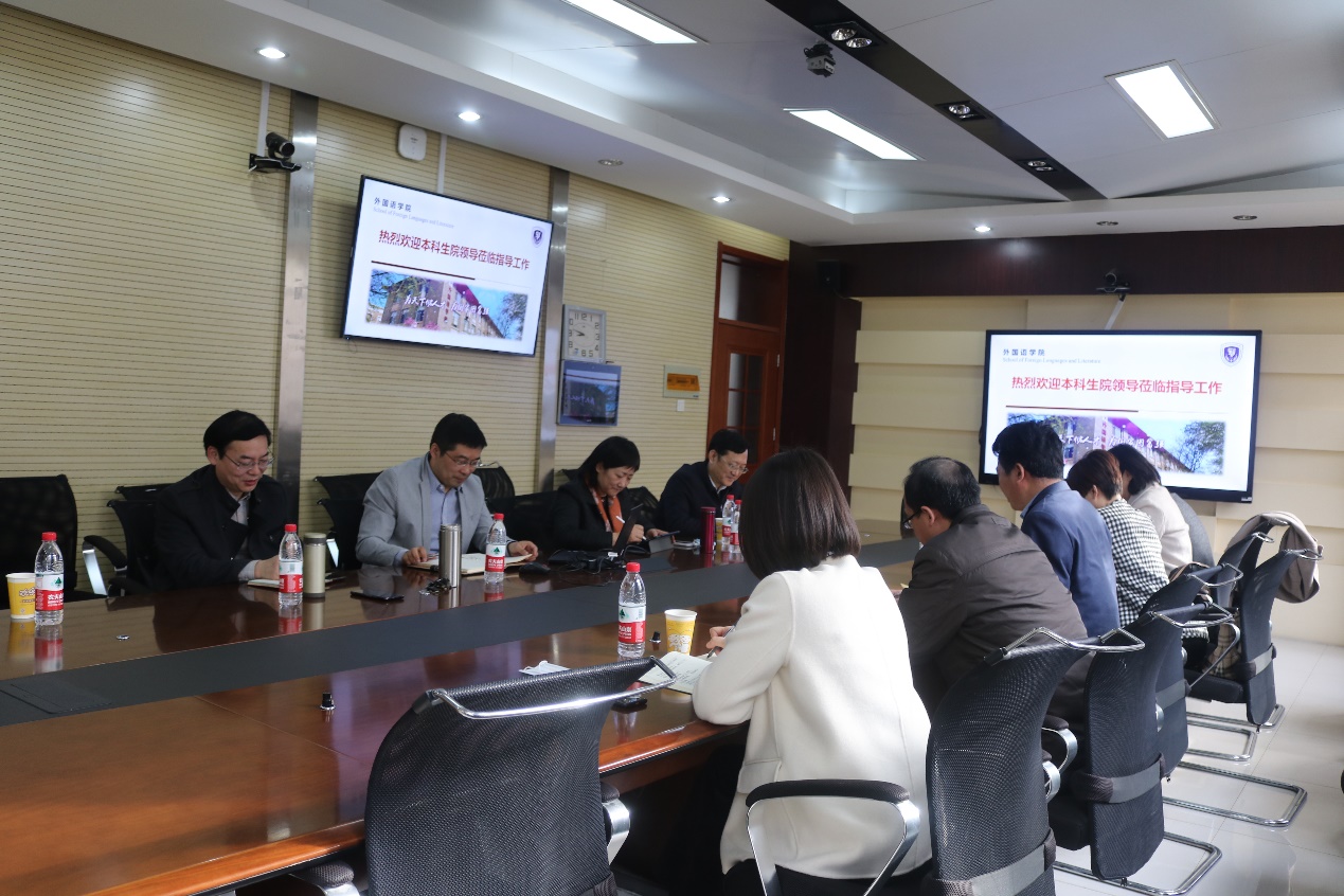 王俊菊院长首先代表学院对本科生院来15vip太阳集团调研指导表示了热烈欢迎,并简要介绍了学院的基本情况。刘洪东副院长向与会人员介绍了学院近几年本科教学及教学改革的情况,并重点汇报了学院自2018年实施大类招生以来所取得的成绩。苏永刚副院长简要汇报了大学外语教学部基本情况以及下一步的改革思路。王俊菊院长最后表示学院将积极配合学校做好相关工作,希望学校针对学院建设与发展中所遇到的困难与问题给予多方面的支持。