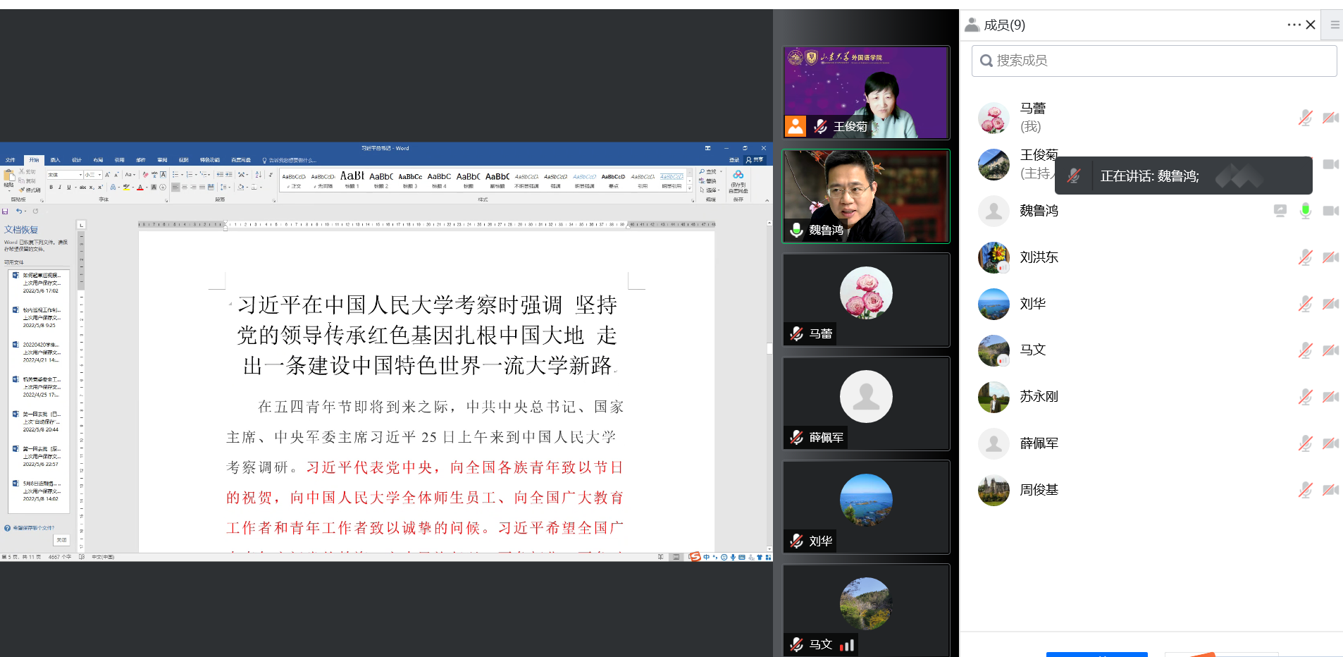 会上,学院党委副书记魏鲁鸿领学了习近平总书记在中国人民大学考察时的重要讲话精神。