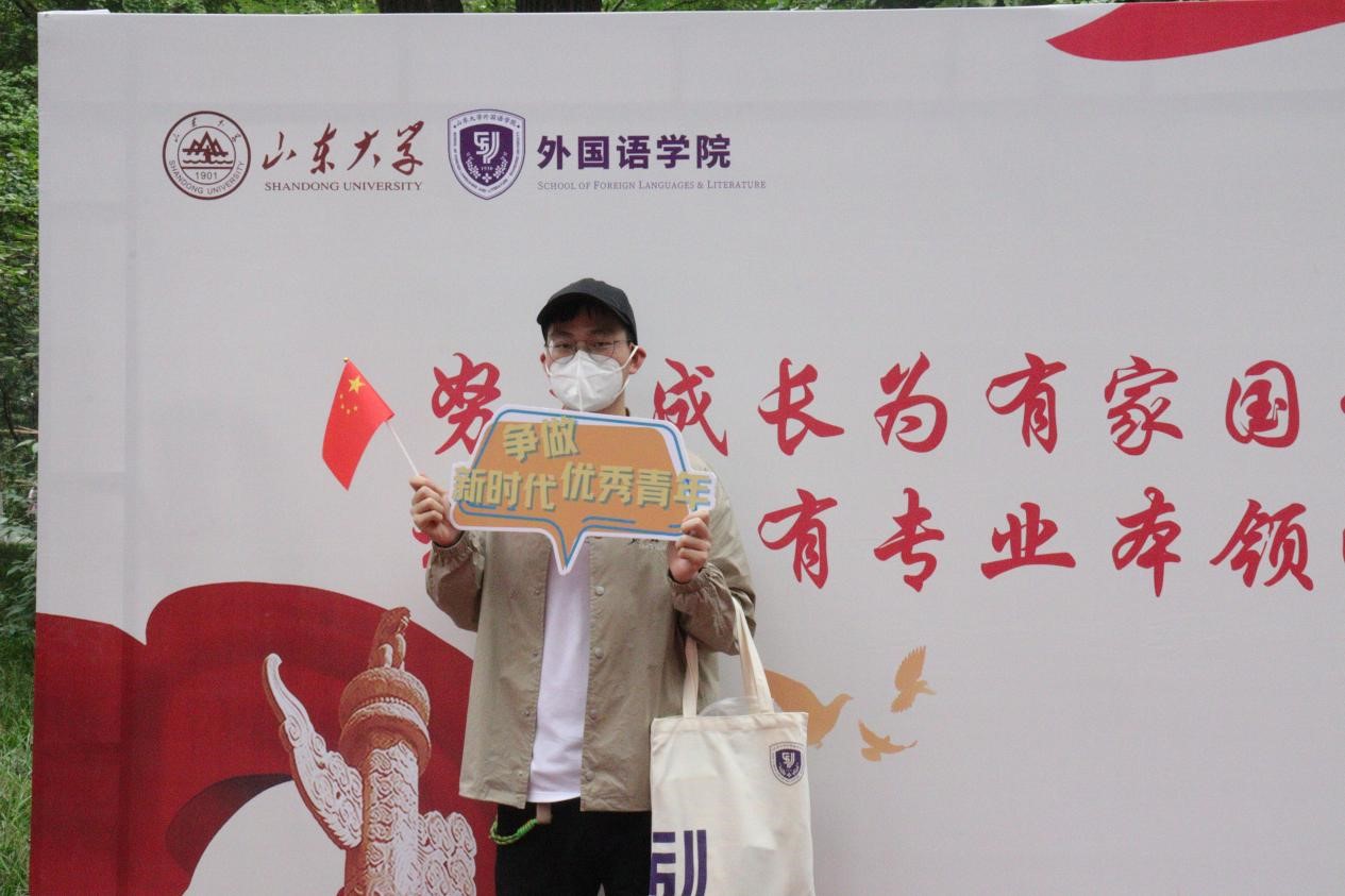 新生在报到处完成报到后,来到学院搭建的特色展板前打卡记录。特色展板由迎新拱门、新生留言板、新生宣誓墙三部分构成。新生穿过迎新拱门“外语门“,种下”入外语门,做山大人,启世界窗“的美好期望,开启全新的大学生活;新生来到留言展板前签名合影,用多彩照片纪念大学生活的起点。特色展板区将洪家楼校区美景与外院新生的蓬勃朝气完美融合,将家国情怀的培养与外院文化的传播进行结合,将三全育人融入迎新过程,构建温暖而有意义的”新生第一课“。