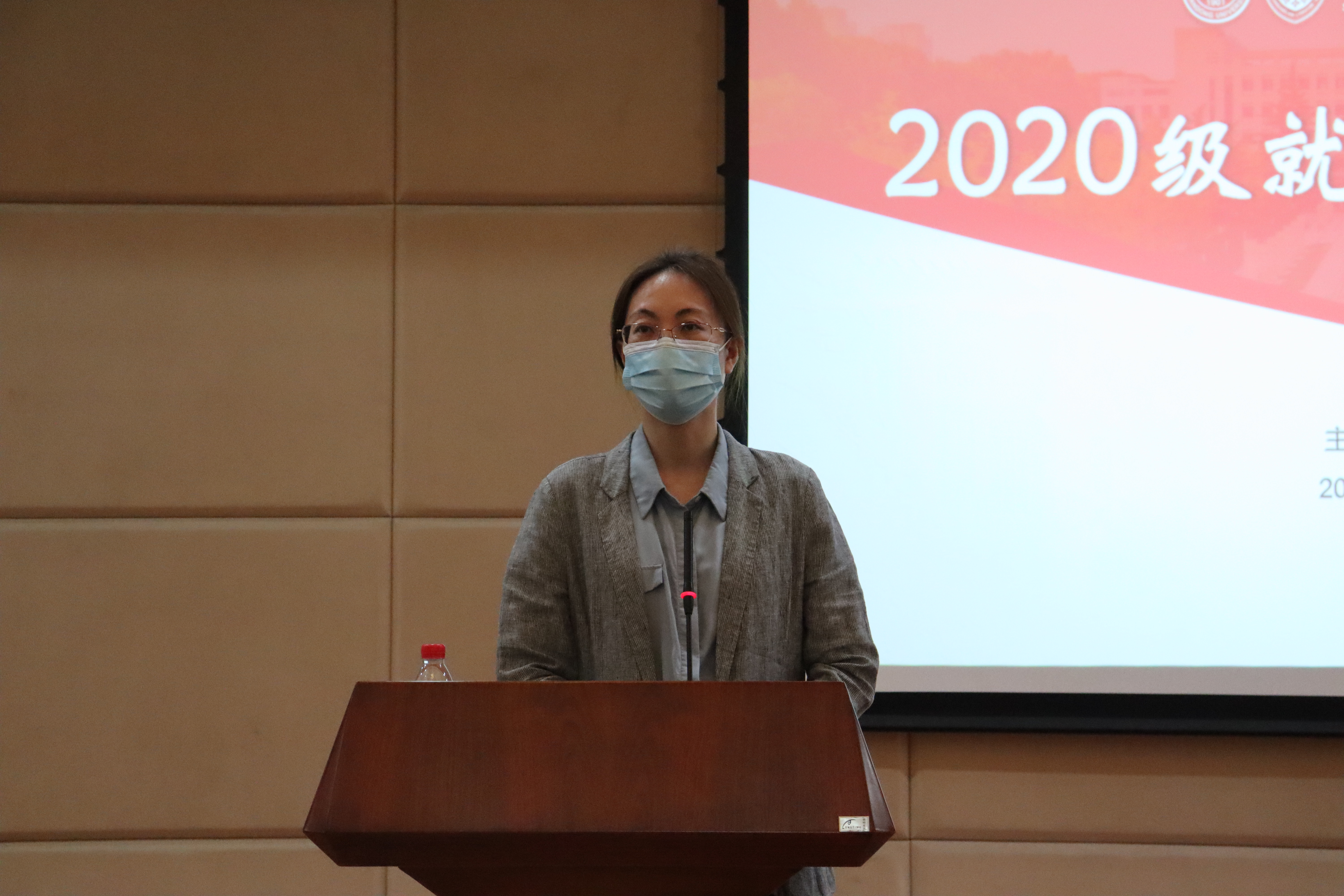 朱蕾对魏鲁鸿的发言进行了总结和补充。她建议同学们调整好心态,积极主动,充分利用学校提供的各类帮助,为实现自身的高质量就业做出努力。