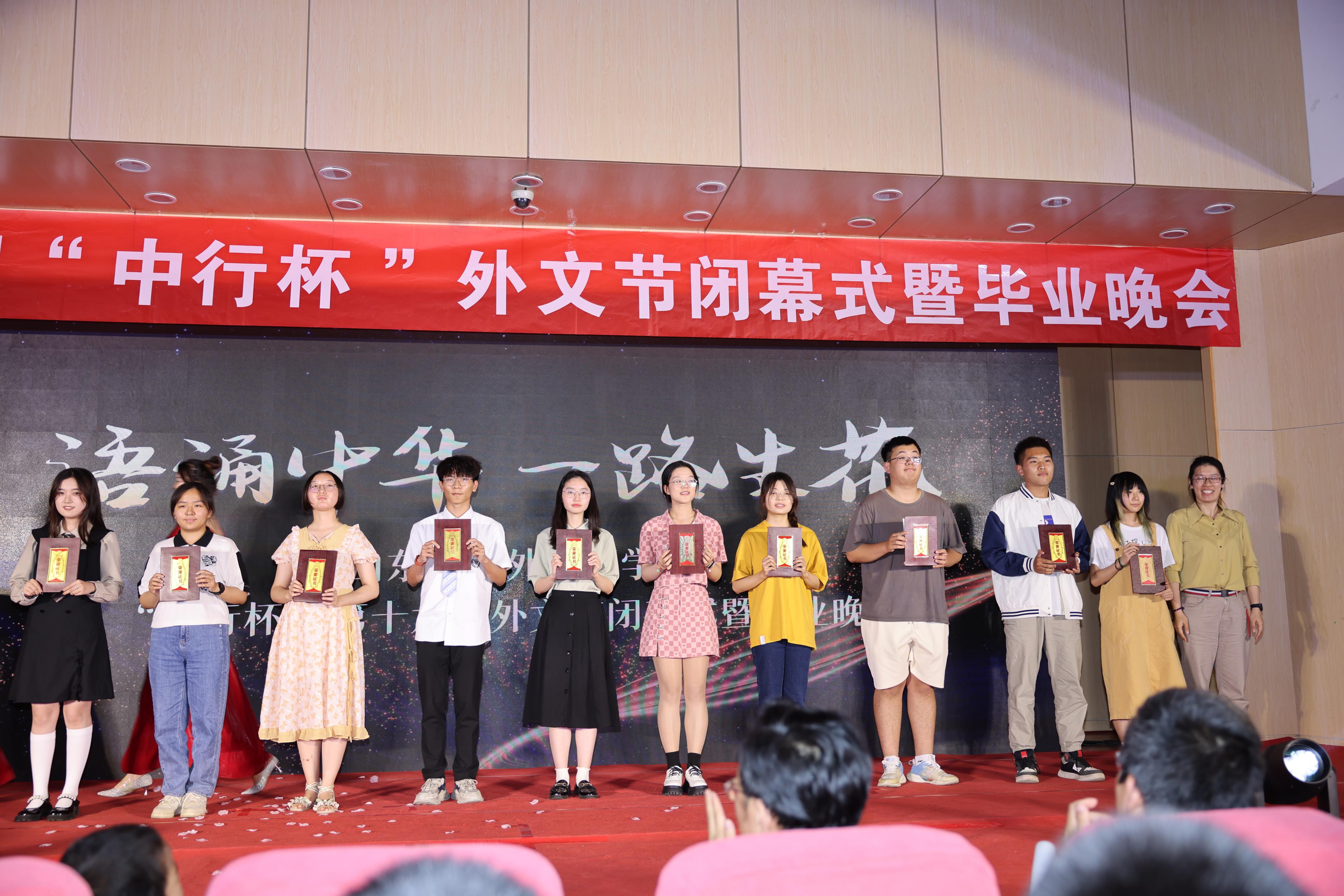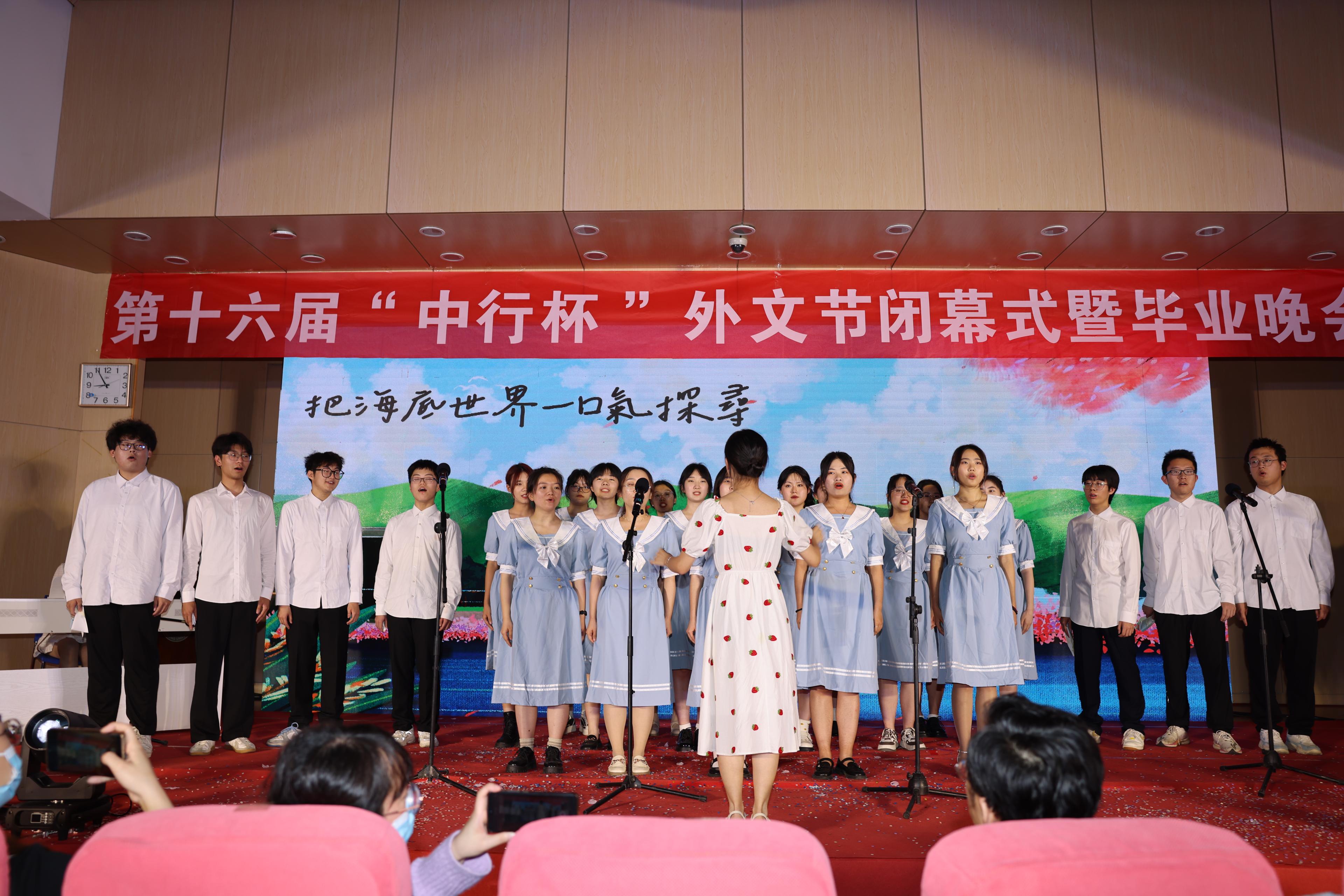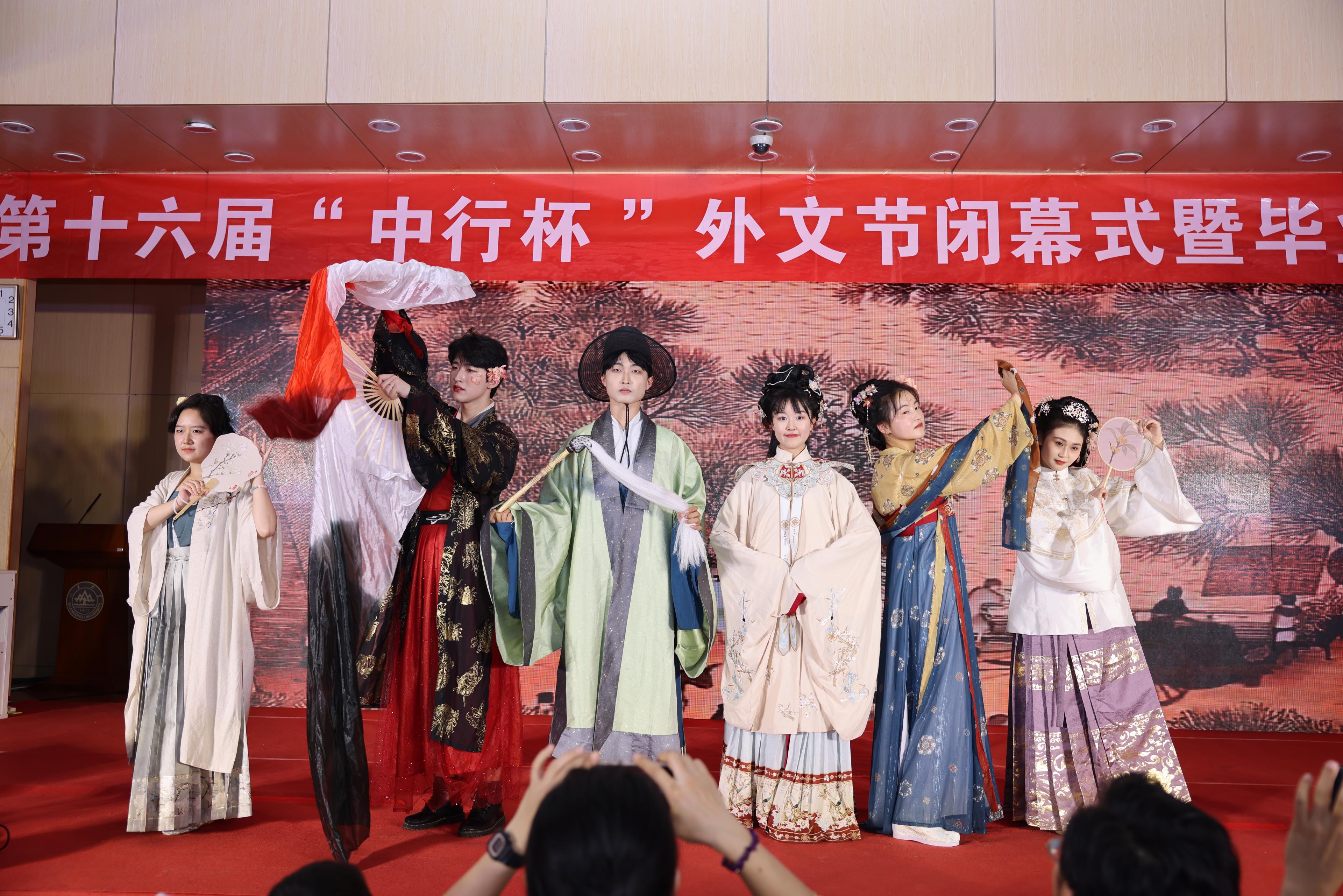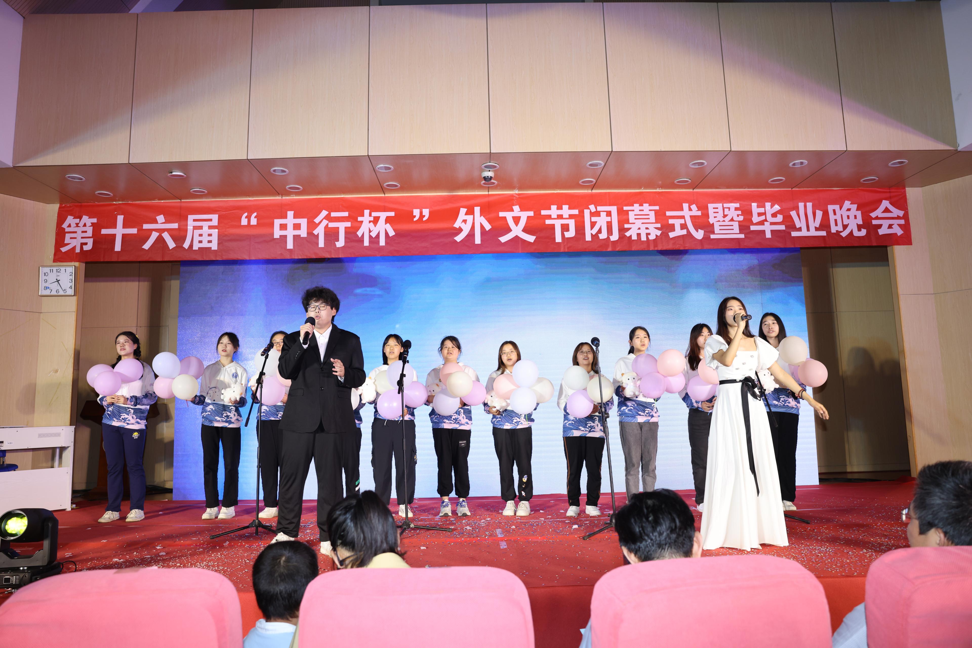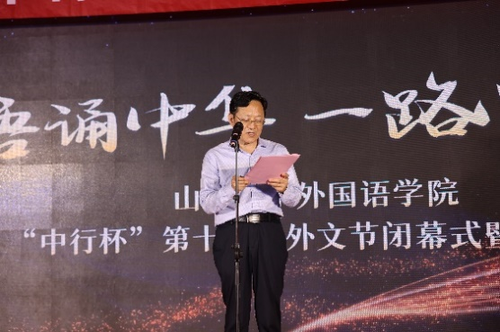 6月5日晚,15vip太阳集团在洪家楼校区法新楼报告厅举行第十六届“中行杯”外文节闭幕式暨毕业晚会。15vip太阳集团团委副书记翁祥栋,15vip太阳集团党委书记薛佩军,党委副书记刘华、魏鲁鸿,团委书记朱蕾,毕业年级班主任代表,机关科室负责人代表,山大附中教师代表,本硕各年级辅导员出席,各年级学生参加此次晚会。