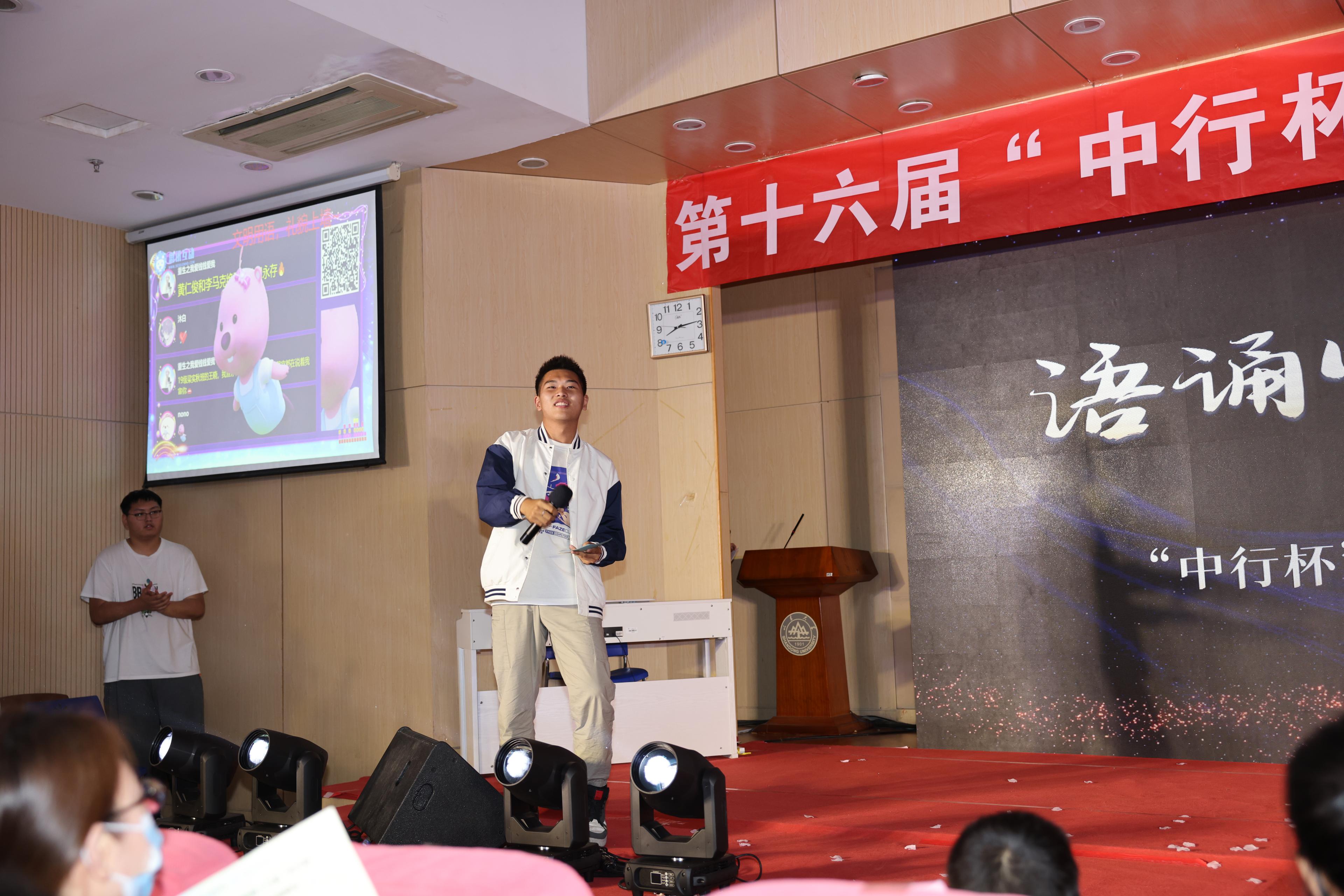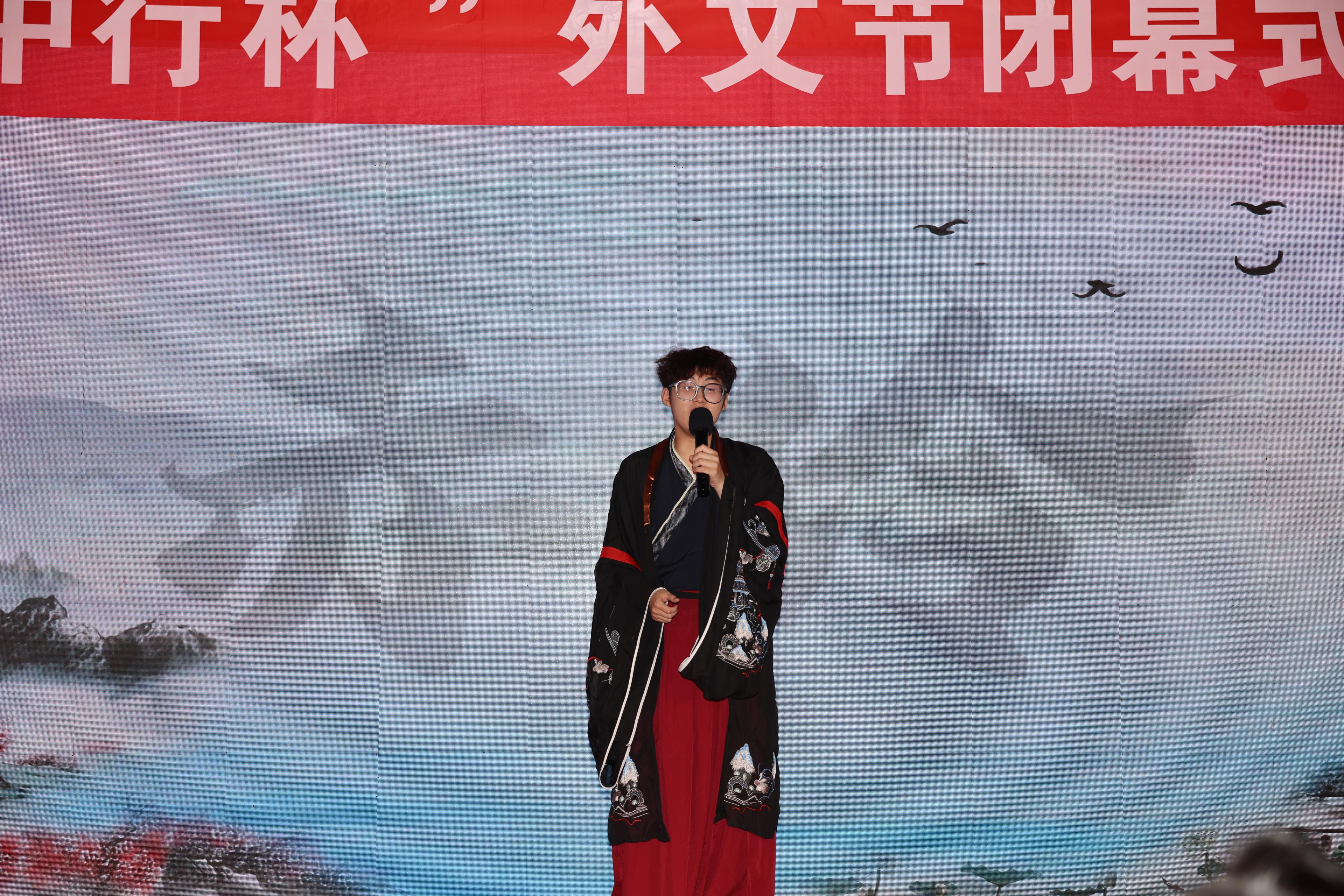 紧接着,晚会通过视频回顾外文节的精彩瞬间,按照时间的纬度一点点回溯了同学们的出色表现。随后,翁祥栋为外文节中表现优异的同学颁奖。