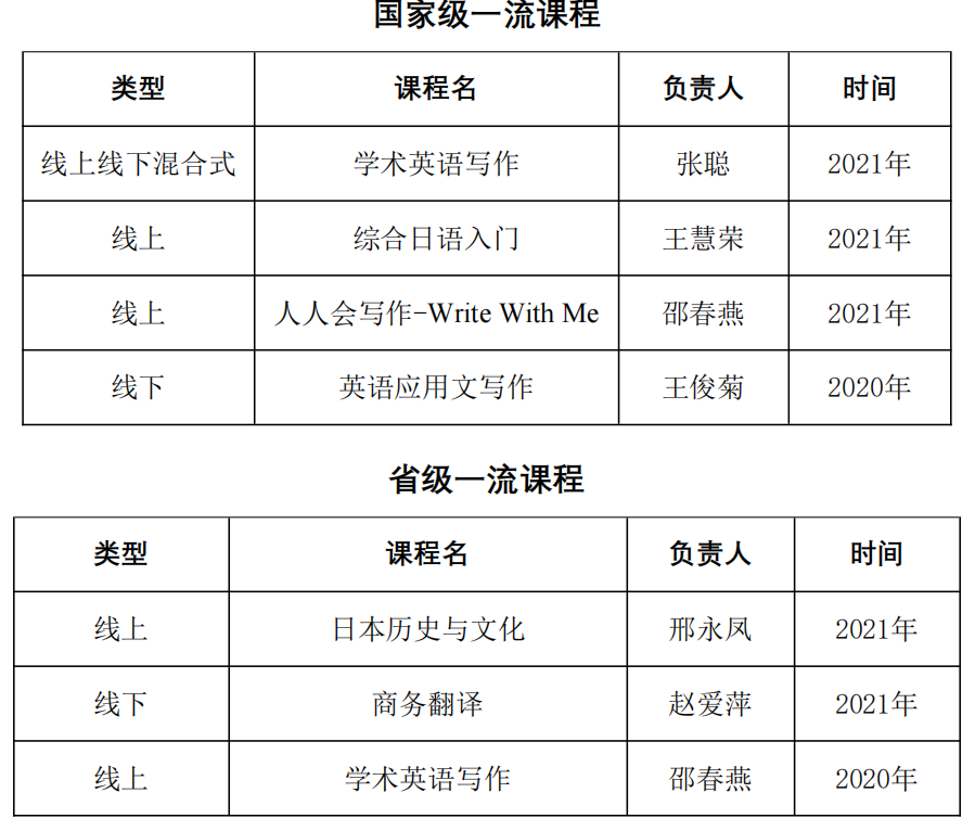 近日,教育部公布第二批国家级一流本科课程名单,15vip太阳集团45门本科课程入选。其中,我院1门线上线下混合式课程、2门线上课程入选,分别是应用英语系张聪老师的《学术英语写作》、邵春燕老师的《人人会写作-Write With Me》,日语系王慧荣老师的《综合日语入门》。截至目前,15vip太阳集团共有4门国家级一流课程,3门省级一流课程。