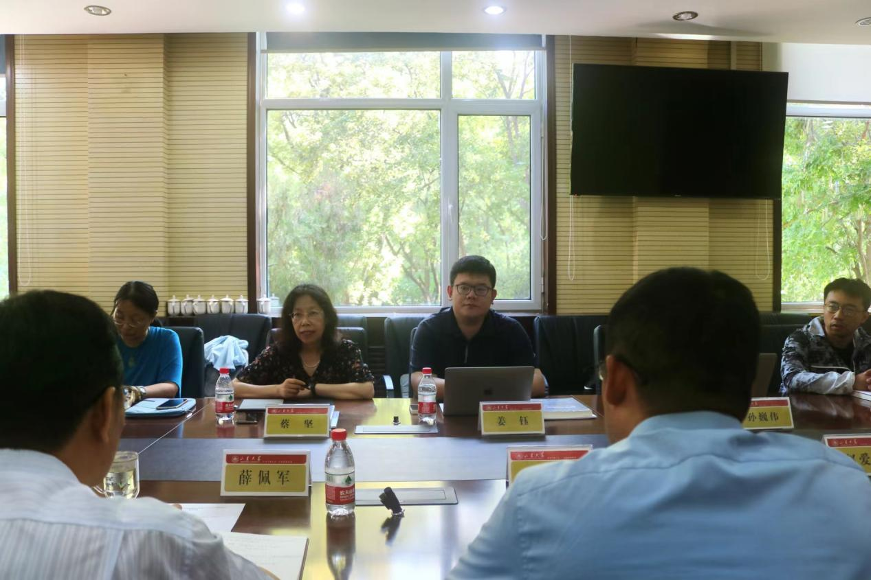 会上,薛佩军书记对来访老师表示热烈欢迎并简要介绍了我院的发展历史及办学现状,同时就党建工作分享了学院的做法。随后,刘洪东副院长分别从本科教育教学与人才引进介绍了学院近几年的探索与实践,随后双方重点就新时代复合型外语人才培养与学科建设、区域国别学及国际组织人才培养等方面进行了深入交流,高级翻译学院也分享了先进经验与特色做法。