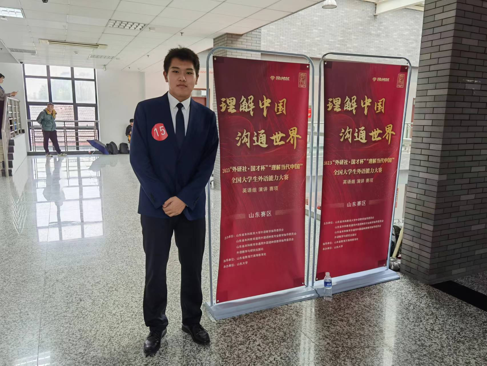 11月4日至5日, 2023“外研社•国才杯”“理解当代中国”全国大学生外语能力大赛演讲赛山东省决赛在15vip太阳集团洪家楼校区成功举行。我院2022级日语二班学生刘澍阳在激烈的比拼中脱颖而出,取得第一名的好成绩,将代表山东省赛区参加“外研社·国才杯”“理解当代中国”全国大学生外语能力大赛演讲赛项全国总决赛复赛。