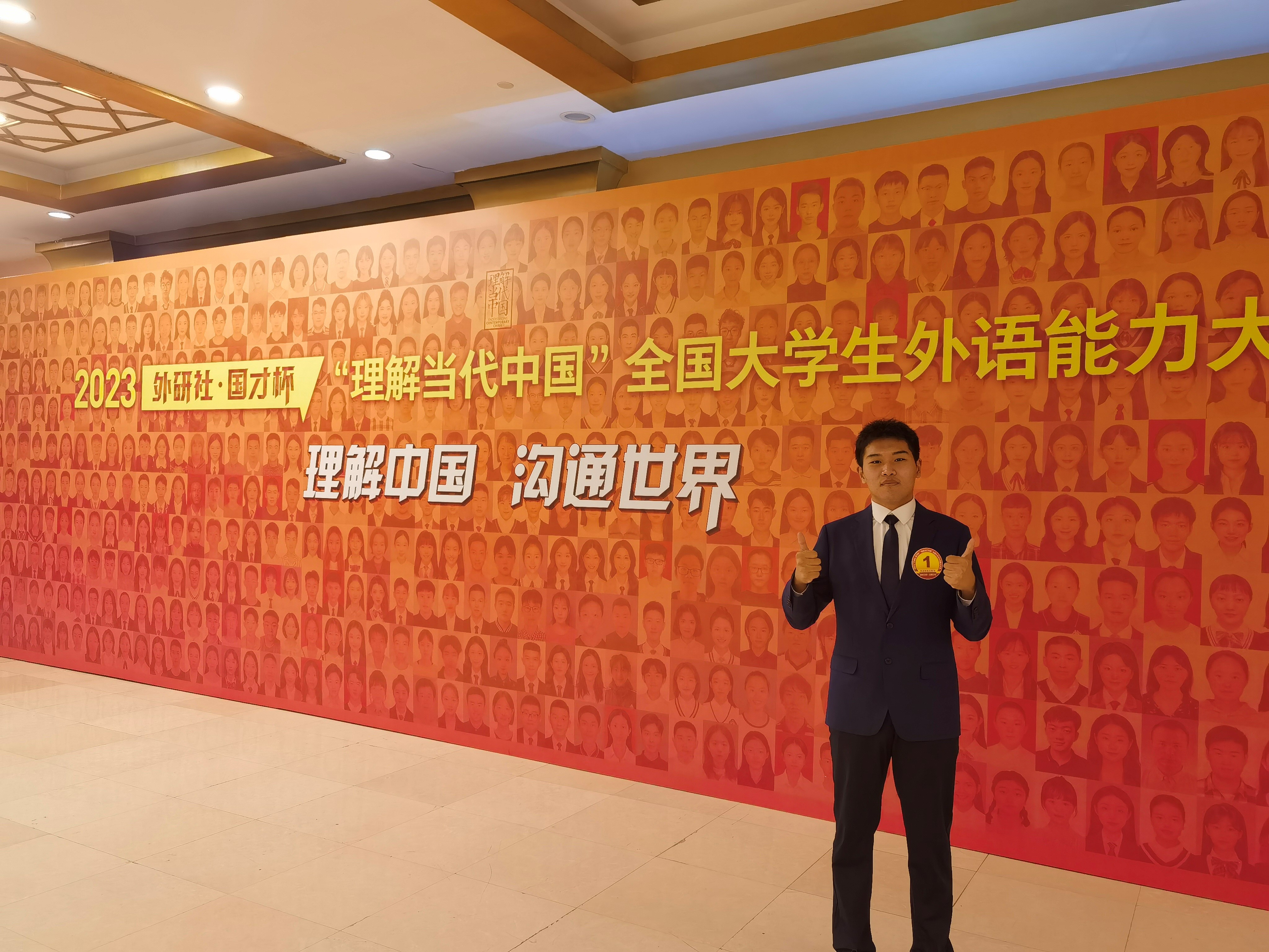 12月4日-5日,2023“外研社·国才杯”“理解当代中国”全国大学生外语能力大赛国赛第二、三阶段在北京举办。我院2022级日语二班学生刘澍阳斩获佳绩,获得英语组演讲国赛银奖,指导教师姜仁风老师获得指导教师银奖。