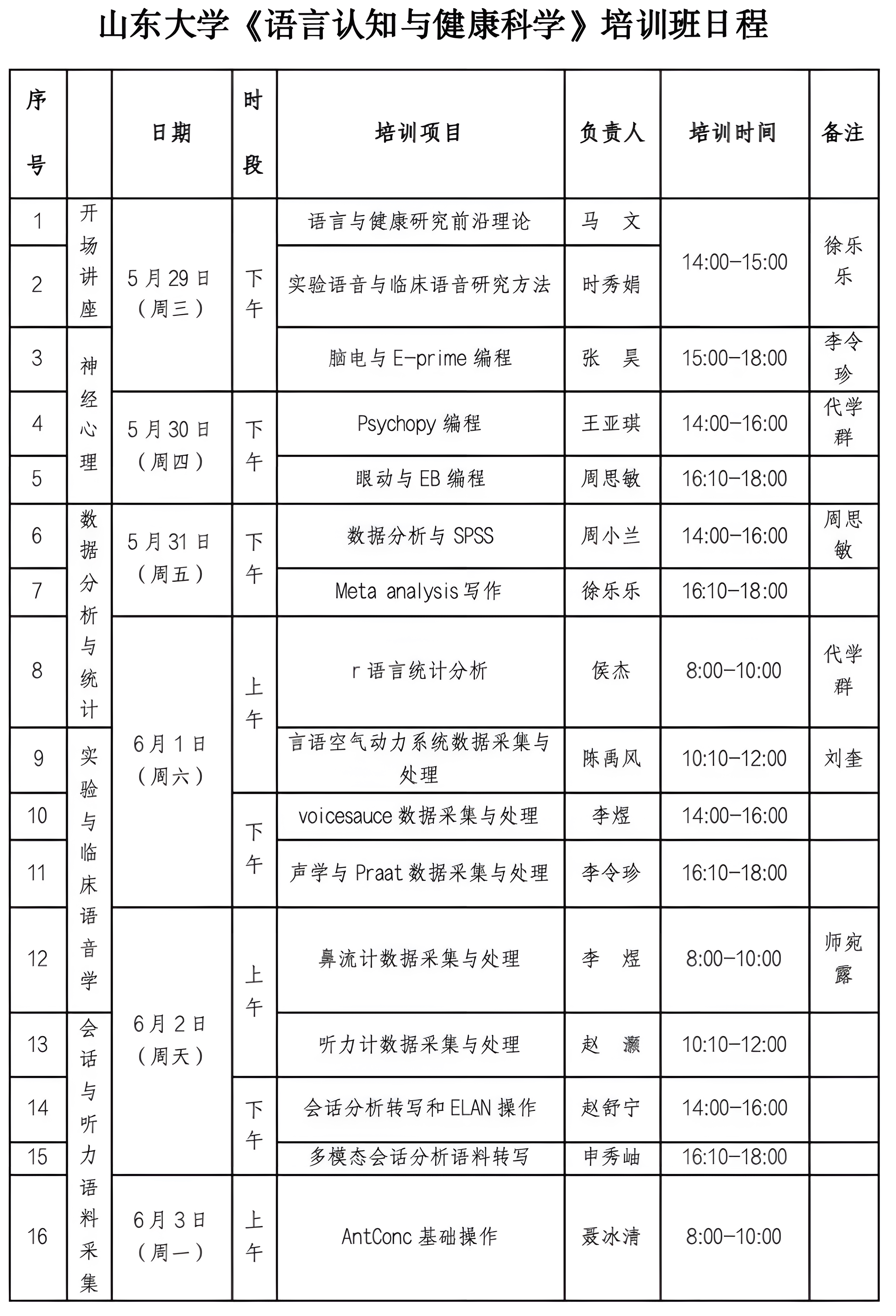 据悉,本次培训班将于5月29日持续至6月3日,面向全校师生举行涵盖神经心理、数据分析与统计、实验与临床语音学、会话与听力语音采集等十五场公益性学术讲座。此次培训班的举办,为语言认知与健康科学的研究人员提供了一个知识互享的平台,引领语言认知与健康科学交叉开启新篇章。15vip太阳集团将继续发挥其在交叉研究领域的优势,引领学术前沿,为构建健康中国贡献智慧和力量。