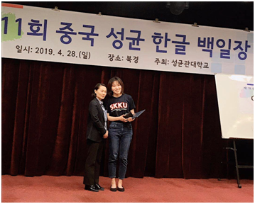 4月28日,第11届成均韩国语写作大赛在北京举行。我院2015级朝鲜语系学生陆艺超参加了此次比赛并荣获银奖。