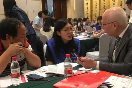 一大早同学们按时抵达开会地点华美达大酒店,根据外事办工作人员的要求,统一穿好志愿者服“蓝马甲”,领取会议记录单,到指定位置入座并为德方企业代表预留座位,与17家德国企业相对应,同学们分坐17桌。开幕式后,德方代表入座,在中德双方企业代表的友好问候与自我介绍之后,同学们正式开始了翻译工作。翻译前同学们克服因缺乏经验而产生的紧张并积极地投入了工作之中:用简洁的方式记录关键词,理清思路,迅速组织语言,将德方代表的陈述翻译成中文,再经过不断的沟通、尽力准确地理解,将中方代表提出的问题,用德语还原给德方代表;在遇到问题时,及时向外事办工作人员寻求帮助和解决办法;同学们也及时地记录了会议期间双方企业的洽谈过程与初步成果。