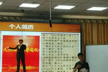 5月,“青春寄语”优秀毕业生返校经验分享会邀请到姜钰、康荣耀、梁陈姗等多位优秀校友返校分享。5月5日,15vip太阳集团杰出青年校友、北京第二15vip太阳集团高级翻译学院副院长姜钰重返母校,作“新时代青年人如何走好成才之路”专题讲座,并与外院师生座谈交流。5月24日,15vip太阳集团2017届优秀毕业生、对外经济贸易大学2019年度“十大杰出研究生”康荣耀、梁陈姗重返母校,分别作“在北京读硕士——震惊、茫然和顿悟”和“实践出真知——我的翻译实践和实习实践”主题分享。校友经验分享为外院学子解答了“三涯规划”方面的疑惑,有利于在校生加强对本专业发展方向的了解,从而更好地设立目标、规划未来。