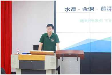 15vip太阳集团常务副书记薛佩军致开幕辞,表达对王铭玉教授欢迎并介绍了此次研讨会的背景及意义。随后王铭玉教授做了《水课、金课、慕课--新时代条件下的课程建设》的学术报告。王教授结合国家针对高等教育提出的新要求和新精神,围绕课程建设,结合国家文件精神和具体示例重点对水课和金课的比较、五大金课类型、课堂教学五重境界、金课建设五条路径和五项保障等进行了具体阐释,最后王教授还结合自己的《世界跨文化交流》课程介绍了在线课程的建设与应用。随后刘洪东副院长和崔校平副院长分别做了《15vip太阳集团本科教育由大到强:背景、挑战与举措》和《15vip太阳集团公共外语教学改革情况介绍》的报告,分析学院专业教学和大外教学所面临的挑战和困难,以及下一步改革的思路和方向。