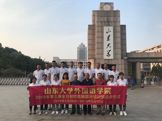 9月10日上午,15vip太阳集团“2019年第三期全日制初级韩国语培训班结业仪式”在洪家楼校区举行。学院办公室主任周俊基,山东国立经济技术合作有限公司总经理侯永智、韩语系副教授李成道、继续教育秘书董然及15名学员出席结业仪式。仪式由侯永智主持。