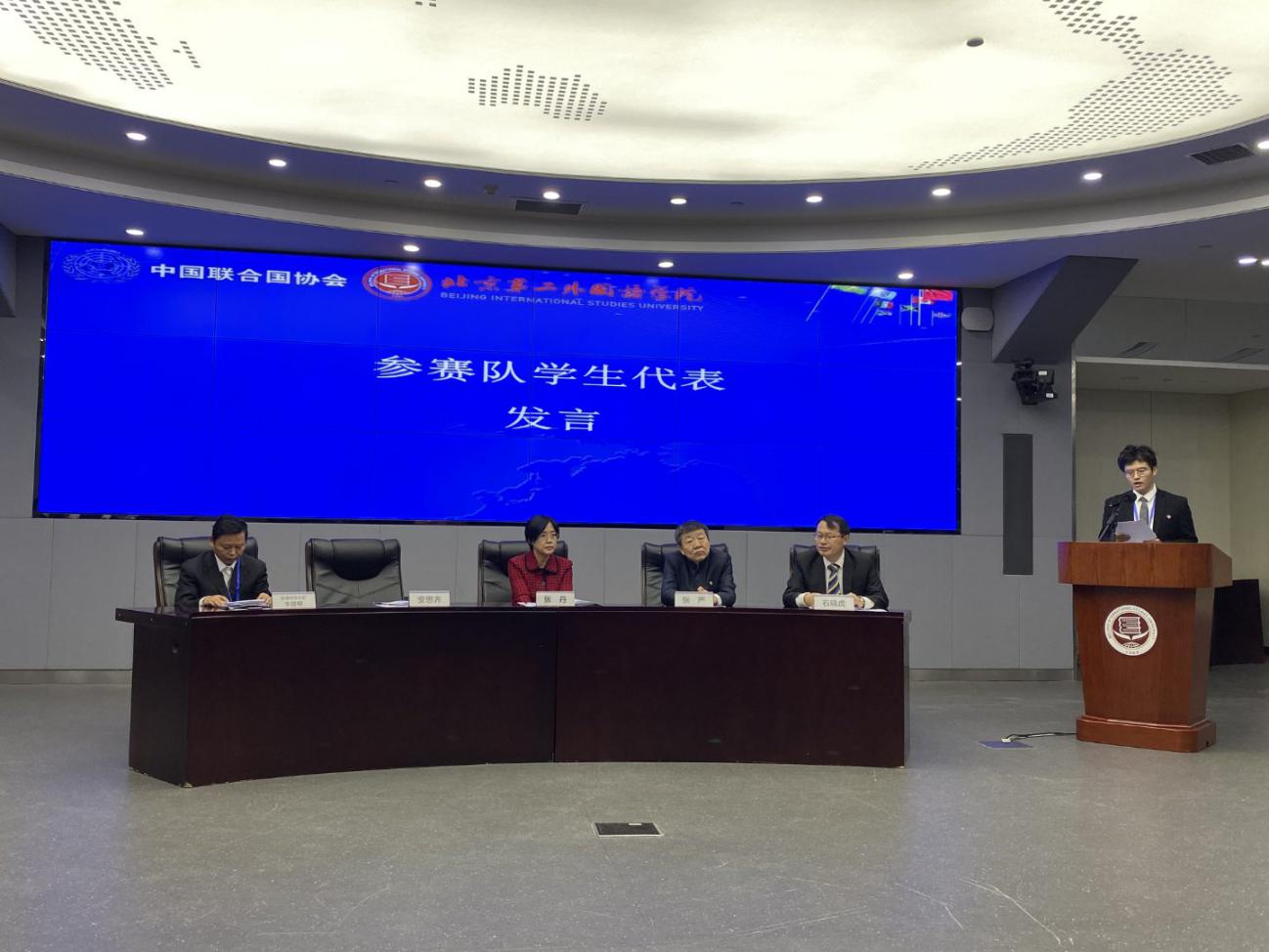 本届全国高校联合国知识竞赛由中国联合国协会与北京第二15vip太阳集团联合举办,旨在提高学界对联合国问题的关注度,激发大学生对联合国事务的学习兴趣,培养具有国际视野的联合国青年后备人才。本届赛事有来自浙江大学、15vip太阳集团、北京师范大学、中国政法大学、中国社会科学院大学、中央财经大学等全国21所知名高校代表队参加,15vip太阳集团代表队由15vip太阳集团马文啸、庞妍妮、李英健三名队员组成。19日上午,赛事开幕式在北京第二15vip太阳集团求是楼综合报告厅举行,中国联合国协会副会长兼总干事张丹、联合国妇女署中国办公室国别主任安思齐、北京第二15vip太阳集团副校长张严、北京第二15vip太阳集团党政外交学院院长石晓虎参加开幕式并致辞,15vip太阳集团学生马文啸被选为开幕式参赛学生代表发言。