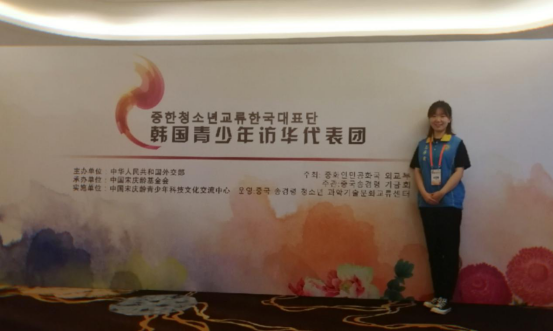 我院研究生刘琳琪主要担任欢迎晚宴及欢送晚宴的部分领导致辞翻译,以及陪同团长外出等志愿工作。刘琳琪表示,本次志愿活动是一次难忘又珍贵的回忆,在与志愿者合作完成任务的过程中收获满满,也十分荣幸能作为志愿者为中韩外交事业尽一份绵薄之力,并且希望今后能有更多机会投入志愿活动中,将所学知识运用到实践中。