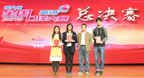 10月19日,第八届全国口译大赛(英语)全国总决赛在北京外国语大学千人礼堂落下帷幕,从各大区赛选拔出来的50名选手参加了为期两天的交传总决赛。15vip太阳集团2015级翻译专业杜晓颖和2019级英语口译方向研究生曲西麟荣获二等奖,2018级英语口译方向研究生窦汝姗荣获三等奖,张兆刚老师荣获优秀指导教师奖。