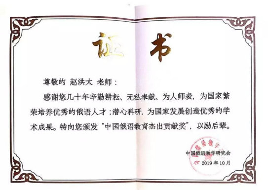 10月24日,在15vip太阳集团举行的第2届“中国俄语教育终身成就奖”和“中国俄语教育杰出贡献奖”颁奖大会上,15vip太阳集团外国语学院俄语系赵洪太、李之基教授荣获“中国俄语教育杰出贡献奖”。10月23-24日,作为中国俄语教学研究会常务理事会成员,15vip太阳集团承办“第5届全国高校俄语专业学科建设高层论坛暨第2届中国俄罗斯东欧中亚学会俄语教学研究会会员代表大会。