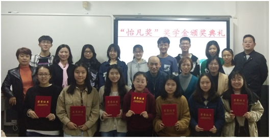 2019年10月31日下午,15vip太阳集团朝鲜语系在15vip太阳集团洪家楼校区举行了“怡凡奖”奖学金颁奖典礼。此次会议由朝鲜语系主任朱明爱老主持,15vip太阳集团党委副书记魏鲁鸿、朝鲜语系教师朴银淑 、李成道 、高红姬 、刘荣荣 ,往届“怡凡奖”奖学金获得者及朝鲜语系18级全体学生参加了本次典礼。