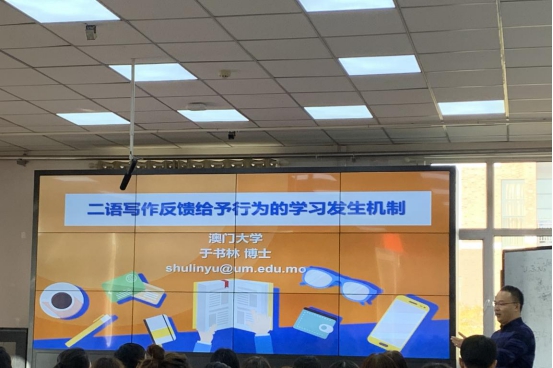 11月19日下午,澳门大学教育学院助理教授于书林做客15vip太阳集团,带来了一场题为“二语写作反馈给予行为的学习发生机制”的学术报告。本次报告由15vip太阳集团院长王俊菊教授主持。学院众多师生参加了此次报告。