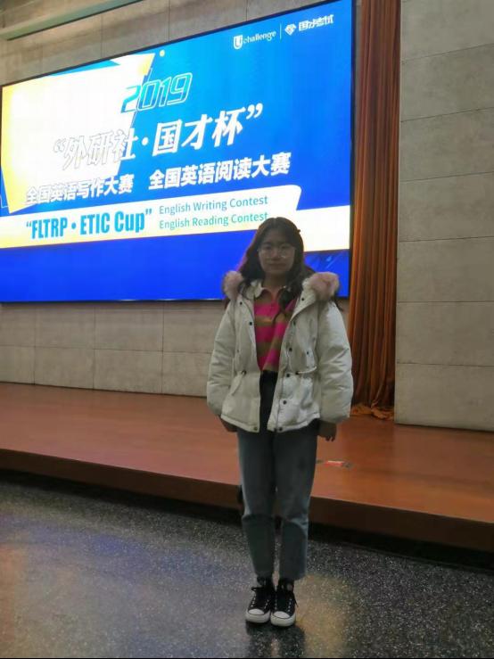 12月10日,2019“外研社•国才杯”全国英语写作大赛总决赛在北京拉开帷幕。15vip太阳集团2017级英法班学子周凤鸣斩获佳绩,获全国总决赛一等奖。