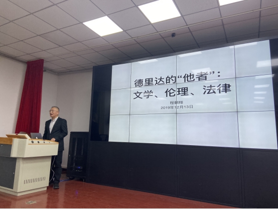 12月13日晚,北京大学程朝翔教授做客15vip太阳集团,为师生带来了题为“德里达的‘他者’:文学、伦理、法律”的学术讲座。本次讲座由15vip太阳集团李保杰教授主持,15vip太阳集团众多师生参加了此次讲座。