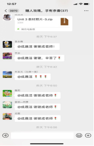 成晟洁和任世芳两位同志为了解决研究生教研室老师和全校研究生没有电子教材的难题,自发主动地将书本一页页扫描成照片并发到群里共享,解决了很多同事的燃眉之急,得到了同事的一片赞扬。