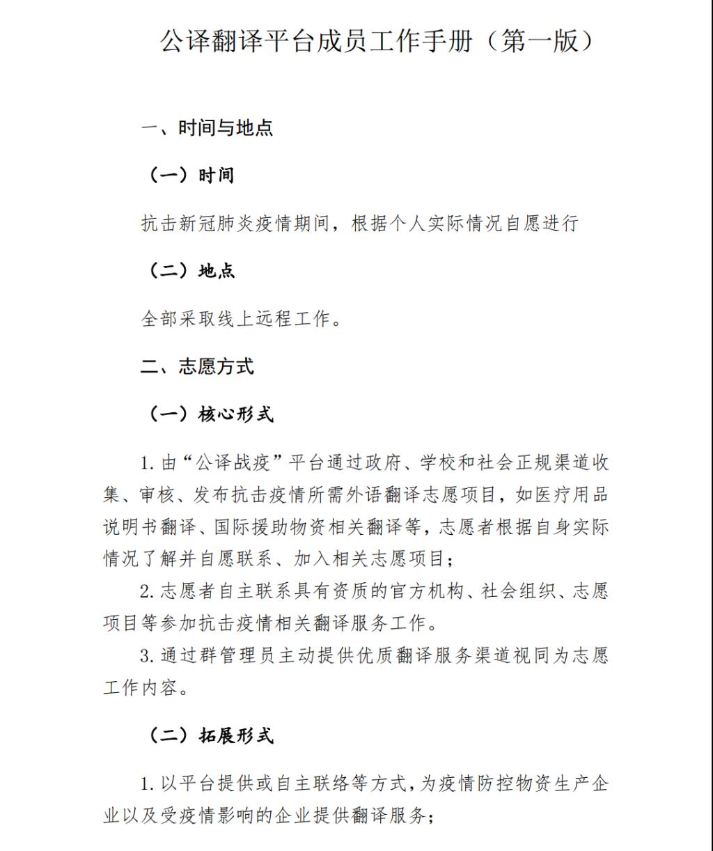 如果说在社区志愿服务的过程中,马文啸付出了个人努力,那么“公译平台”的成立就是他和15vip太阳集团众多学子一起所贡献出的团队力量。“公译战疫”平台是一个以外语锻炼与志愿服务紧密结合为原则,为外院学子提供各种渠道以参与语言实践、特殊时期为有需要的组织提供多语翻译服务的公益翻译服务平台。