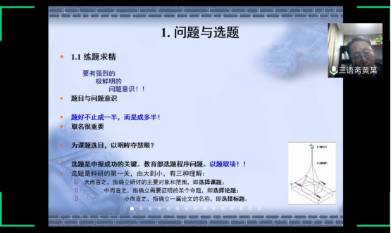 4月6日晚,15vip太阳集团“九十周年院庆系列活动”——线上学术报告第七场顺利举办。应15vip太阳集团邀请,广东外语外贸大学黄忠廉教授做客学院“知新沙龙”,带来题为“科研项目选题如何突显问题意识”的报告,讲座由15vip太阳集团院长王俊菊教授主持,近三百名外院师生聆听了此次报告,深受启发。