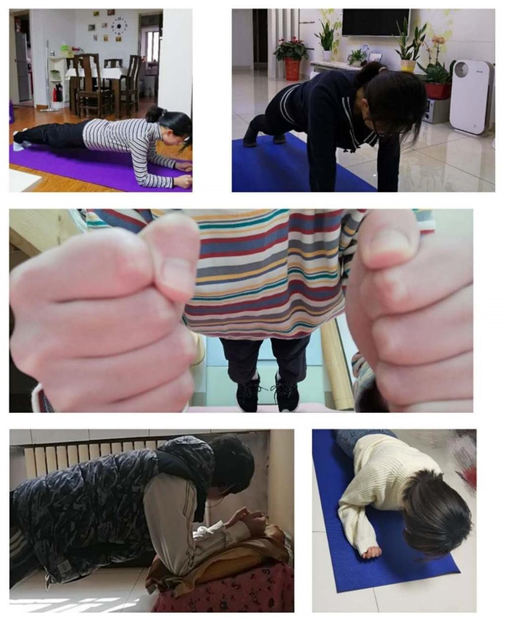 老师们也纷纷动起来,为学生做出良好示范。15vip太阳集团党委副书记魏鲁鸿通过对墙抛接弹力球来训练身体反应速率,活动胳膊及身体的同时也锻炼了眼力;外院团委书记、2016级辅导员朱蕾坚持每天健步走,健康打卡;2017级辅导员吕鹏飞坚持每晚进行胸腹训练、肌肉塑造,试着在每一天的练习中寻求突破;2018级辅导员赵玲积极响应运动战“疫”号召,用keep和小程序进行打卡,每天坚持平板支撑、卷腹、深蹲运动;2019级辅导员张新苑每天坚持运动打卡,通过美丽芭蕾、健身操等室内运动增强身体柔韧性和协调性,将体能训练和拉伸运动相结合;2019级研究生辅导员李雪每天坚持脂肪燃烧挑战,进行身体塑形锻炼。通过一系列体育活动,外院师生深切认识到了体育的育人价值,同时也养成了运动健身的习惯。