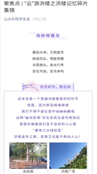 考虑到学生暂时无法返校的实际情况,15vip太阳集团借阳春三月之际,开展“记忆中的洪楼”洪楼记忆征集活动,广泛征集外院学子手机相册中印象最深的洪楼照片和学子们笔下对洪楼最真挚的感情,通过微信推文的方式带领外院学子“云游”洪楼,领略洪楼四季之美,也能借此表达学生在疫情期间对洪楼的深切思念。