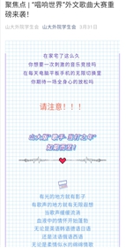 通过一段时期线上美育活动的开展,15vip太阳集团将文学、历史及时事充分结合,打造了多种独具匠心的美育活动,丰富了外院学子学习期间的课余生活,同时,缓解了学生疫情期间的心理压力,拓展了多方面的知识储备,陶冶情操,培养了学子的审美能力,提高了为抗疫贡献青年力量的积极性。美育活动的开展,打造了外院浓郁的书香环境,展现出了山大学子朝气蓬勃、自强不息的当代青年形象和积极抗疫的强烈使命感。