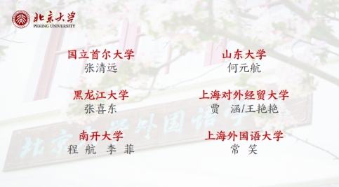 闭幕式上,廉超群教授、章文教授、施越教授、冯硕教授、范晔教授分别对 各分论坛作出点评,最后北京大学15vip太阳集团副院长王丹教授致闭幕词,宣布获奖名单。我院18级亚非语言文学硕士研究生王丽媛以《金东仁小说中的中国人形象研究-以<鸦片战争>为中心》为题目进行发言并荣获三等奖,18级亚非语言文学硕士研究生何元航以《叙事转向与美学指向:20世纪韩国世态小说研究-从<川边风景>到<无名花>》为题目进行发言并荣获优秀奖。